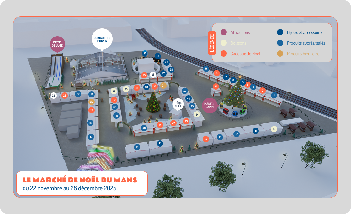 📍 Lieu : Sur le Marché de Noël du Mans – Place de la république